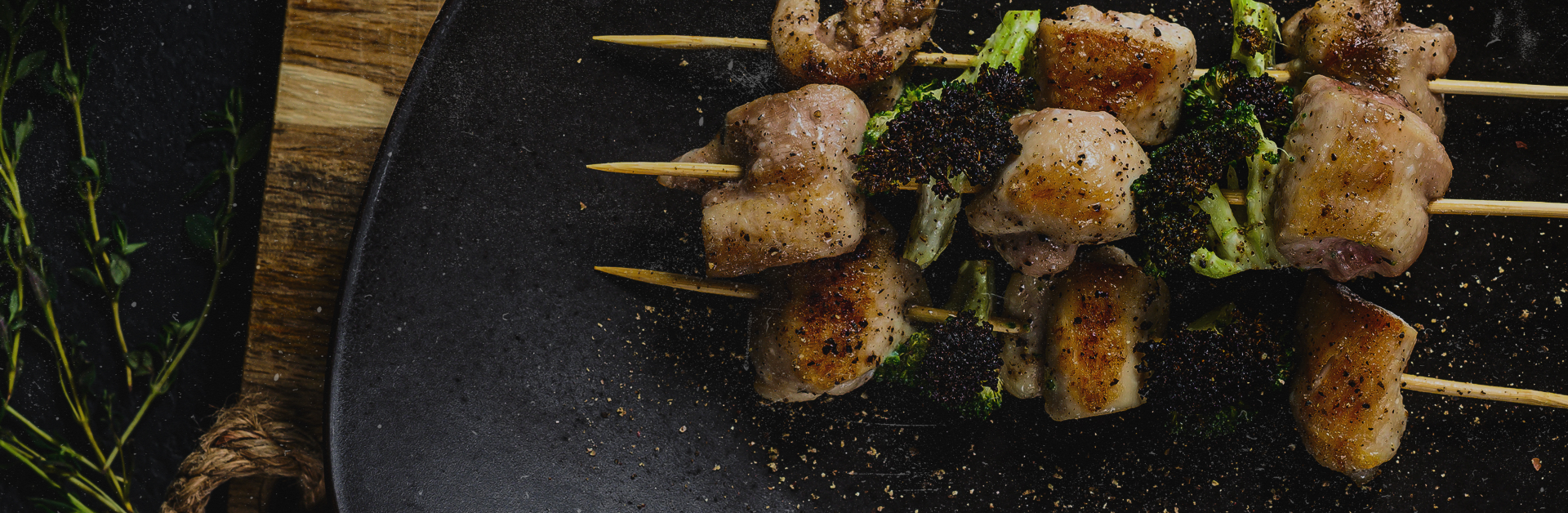 Espetinho de frango com brócolis